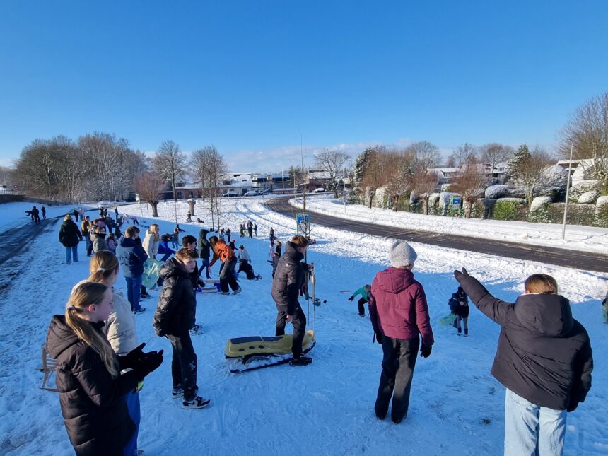 Sneeuwpret op eerste schooldag van het nieuwe jaar in ’s-Gravendeel