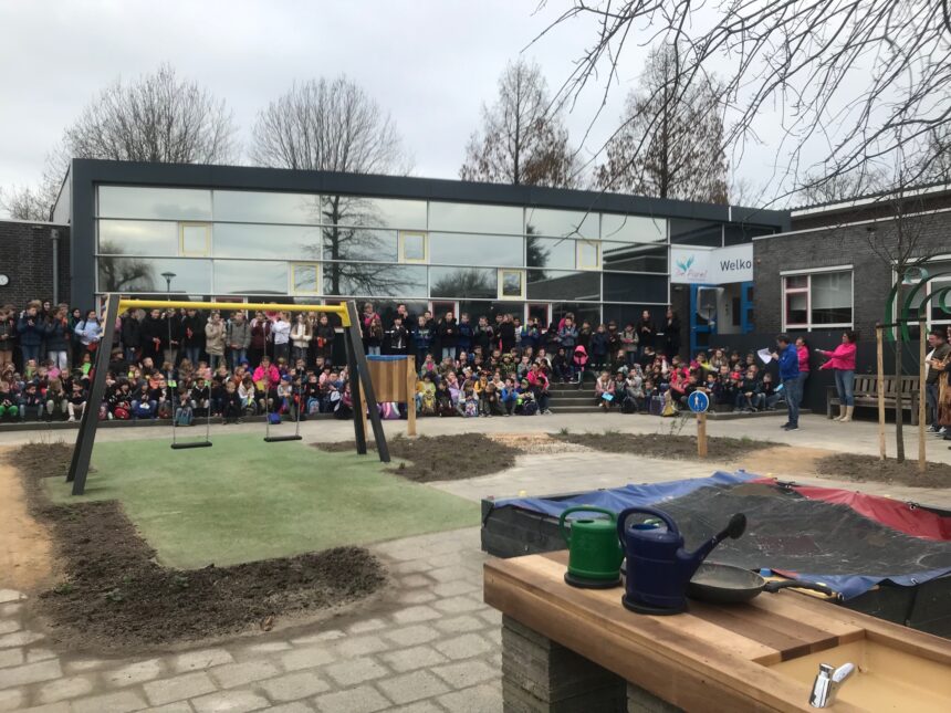 STRIJEN – Het groene onderplein van De Parel is vandaag officieel geopend. Onder toeziend oog van tientallen enthousiaste leerlingen, ouders en teamleden werd het vernieuwde plein feestelijk in gebruik genomen.