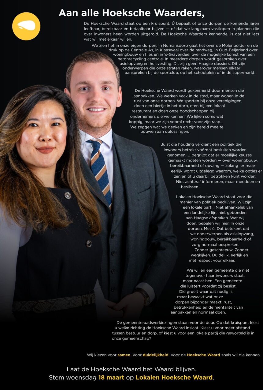 HOEKSCHE WAARD – Lokalen Hoeksche Waard roept inwoners op om bij de komende gemeenteraadsverkiezingen bewust te kiezen voor een lokale partij. Onder de campagneleus “Laat de Hoeksche Waard het Waard…