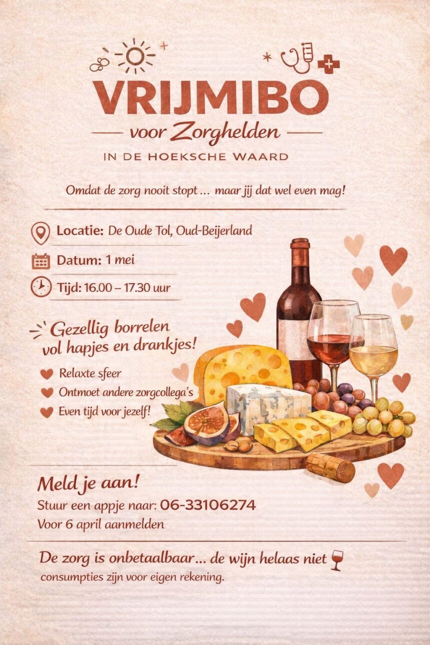 In de Hoeksche Waard wordt binnenkort een speciale borrel georganiseerd voor zorgmedewerkers. Initiatiefnemer Joy wil met deze bijeenkomst zorgcollega’s samenbrengen…