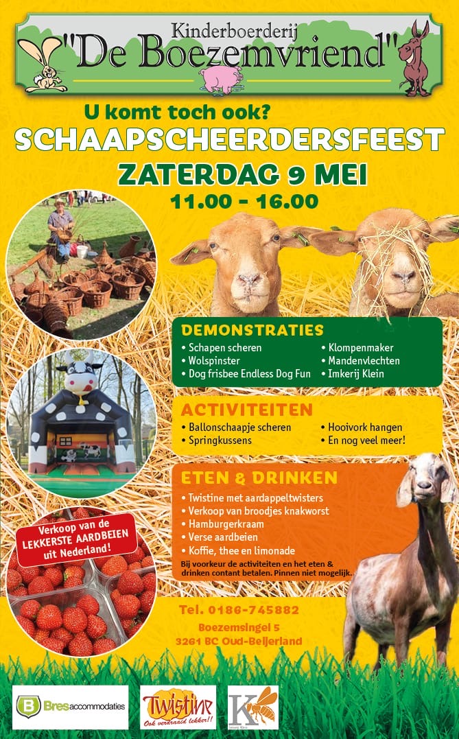 OUD-BEIJERLAND – Kinderboerderij De Boezemvriend organiseert op zaterdag 9 mei het jaarlijkse schaapscheerdersfeest. Bezoekers zijn van 11.00 tot 16.00 uur…