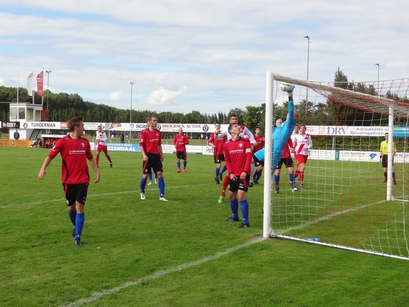 Even kreeg het thuispubliek nog de hoop op een resultaat toen een handsballetje een strafschop opleverde, Wesley Koedam verkleinde daardoor tot 1-2. De scheidsrechter was consequent want een even onschuldig handsballetje aan de andere kant leidde ook meteen tot een kalktrap: Patrick de Reuver maakte er 1-3 van. Na de tweede gele kaart voor Kevin van Valen en het geblesseerd uitvallen van Jurriaan Lindhout werd de rampdag compleet gemaakt door nog een tegengoal: 1-4.