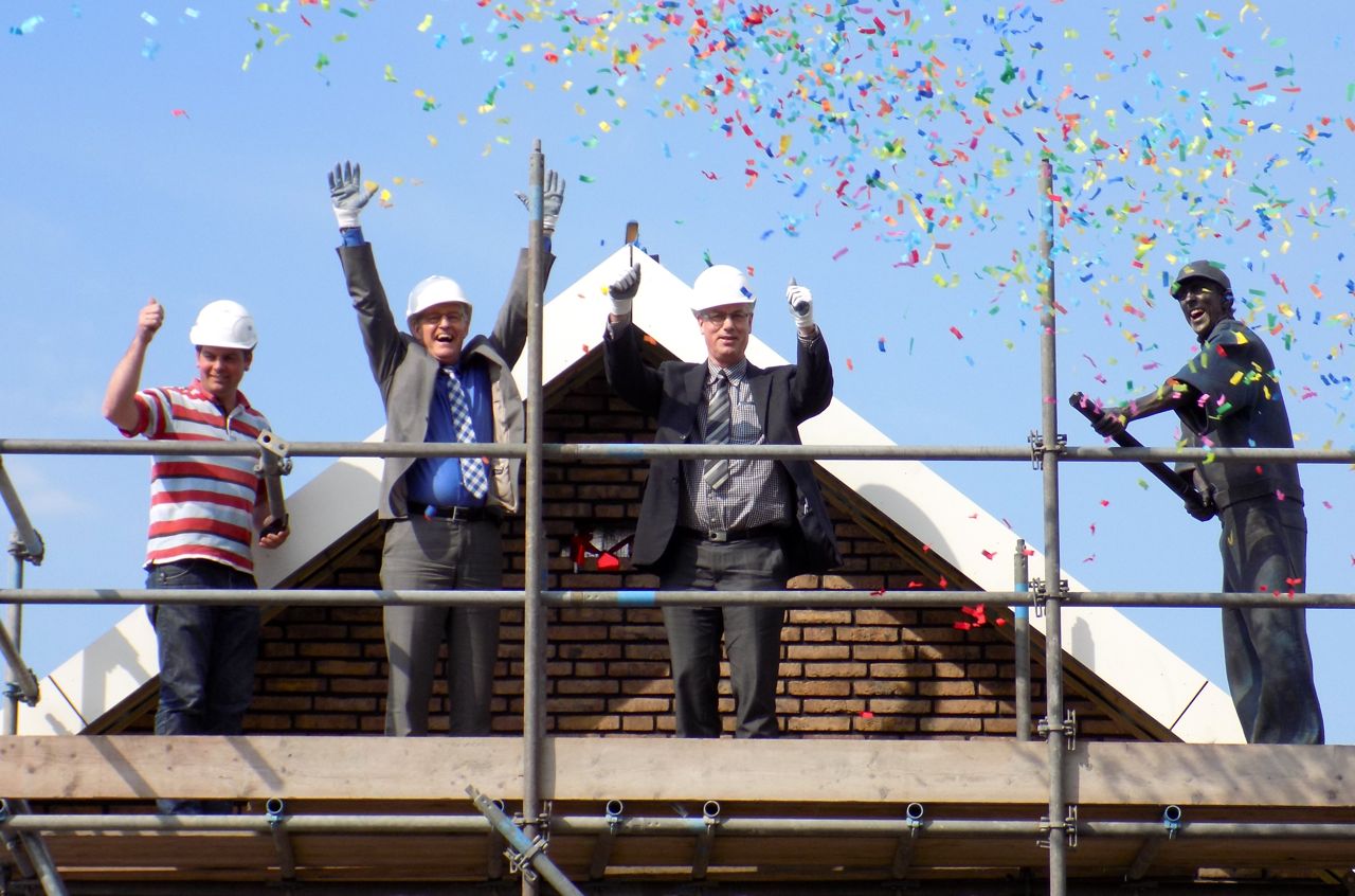 Wethouder Den Boer van Gemeente Korendijk en Ben Pluimer, directeur-bestuurder van HW Wonen zorgden er gezamenlijk voor dat de officiële laatste steen vakkundig werd ingemetseld in een gevel. De tien seniorenwoningen die eerder op deze locatie in het centrum van Piershil stonden konden niet meer gerenoveerd worden. Daarom besloot HW Wonen om te kiezen voor nieuwbouw. Er zijn nu dus zeven nieuwe, ruime seniorenwoningen verrezen in de Prins Bernhardstraat. Aannemer Kroon & De Koning ’tekende’ eerder ook al voor nieuwe seniorenwoningen in Maasdam, gemeente Binnenmaas. Twee van de zeven nieuwe woningen zijn verhuurd in de vrije sector, de overige vijf zijn huurwoningen in de sociale sector. Inmiddels zijn alle huizen al verhuurd. Een duidelijk teken dat veel ouderen graag in de eigen gemeente willen blijven wonen. Dit soort levensloop bestendige huizen zijn daarvoor uiteraard ideaal. Na de feestelijkheden op de bouwlocatie werden de genodigden en toekomstige huurders in Zorgcentrum Heemzicht getrakteerd op koffie met gebak en een hapje en een drankje.