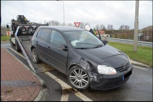 NUMANSDORP – EEN auto strandde zondagmorgen 11 december op het verkeersplein van de N487 te Numansdorp. Daarvoor had de bestuurder een asociaal weggedrag ten toongesteld op de A29.