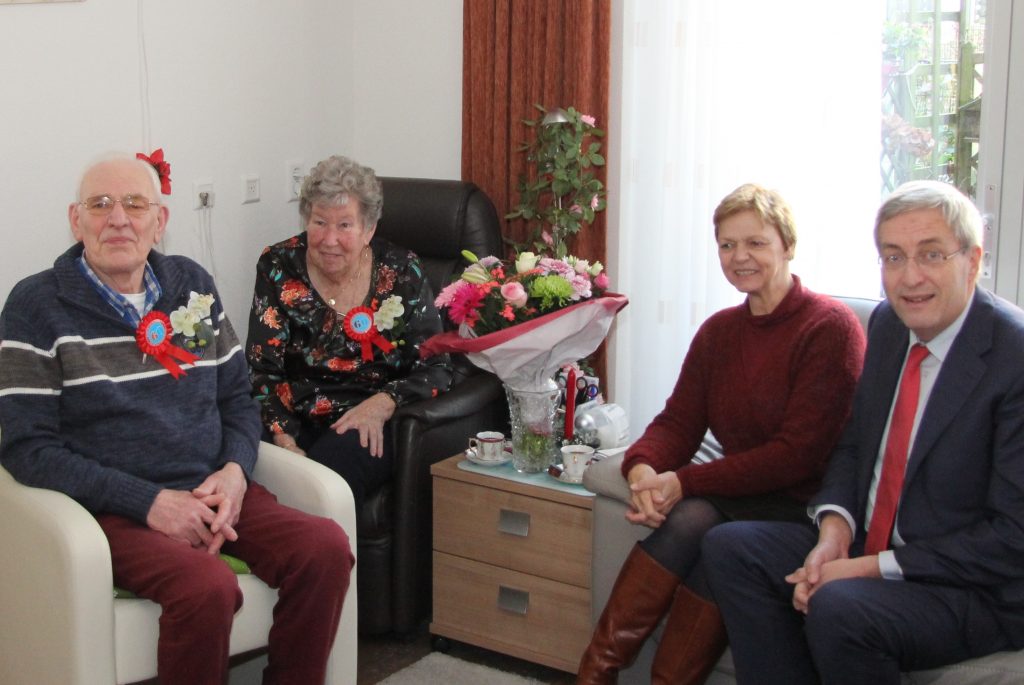 Burgemeester Borgdorff en zijn echtgenote bezochten het echtpaar en brachten onder overhandiging van een boeket bloemen de felicitaties over namens het gemeentebestuur.