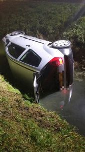 WESTMAAS – Een Stuurfoutje op de Munnikendijk te Westmaas. Vermoedelijk had de bestuurder van dit voertuig te diep in het glaasje gekeken aldus de Politie Hoeksche Waard op hun Facebook.