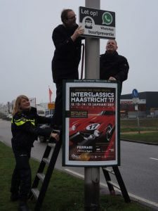 NIEUW-BEIJERLAND – Op uitnodiging van Dorpsvereniging De Filopopers uit Nieuw-Beijerland heeft burgemeester Stoop op maandag 9 januari in het bijzijn van een aantal bestuursleden van de dorpsvereniging en de wijkagent, het eerste WhatsApp Buurtpreventiebordje opgehangen aan de lichtmast nabij de Handelstraat op het bedrijventerrein in Nieuw-Beijerland. Het andere bordje komt aan een lichtmast bij het bebouwde kom bord aan de Dorpsweg.