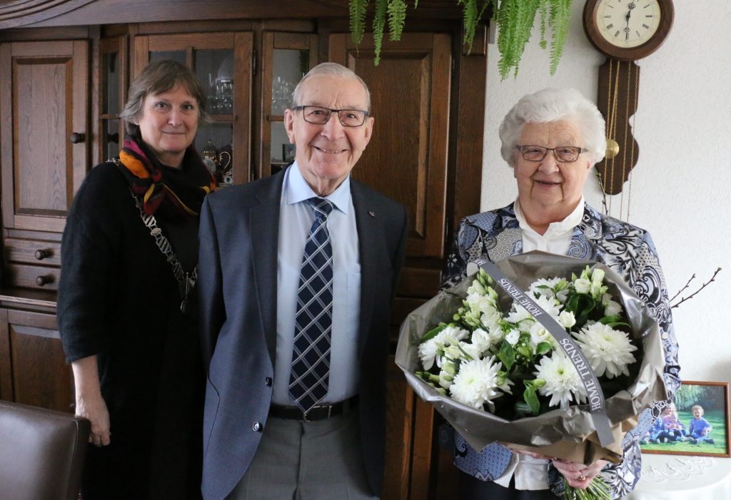 De bruidegom zag het levenslicht op 30 september 1931 in Oud-Beijerland; de wieg van de bruid stond op 31 oktober 1934 in Heinenoord. Burgemeester Jon Hermans-Vloedbeld bracht het diamanten paar een felicitatiebezoek en overhandigde hen een boeket bloemen namens het gemeentebestuur.
