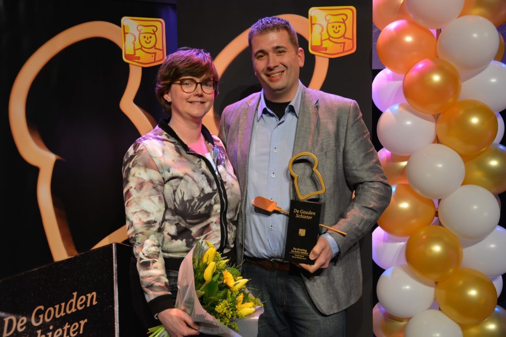 Apeldoorn – Tijdens de nieuwjaarsbijeenkomst van het Echte Bakkersgilde zijn de winnaars van de strijd om de titel Beste Winkelbeoordeling van de Echte Bakkers bekend gemaakt en gehuldigd. De Koning, De Echte Bakker met zijn winkel in Putterhoek pakt de titel Beste Winkel 2017 en kreeg daarmee de Gouden Schieter. Toen Alwin en Heleen de Koning anderhalf jaar geleden hun winkel vernieuwden hadden ze een duidelijke visie over sfeer en beleving. Door deze prijs worden de gemaakte keuzes bevestigd. De tweede plaats is voor Van Meijel, De Echte Bakker in Clinge en het brons gaat naar Dieteren in Maasbracht.
