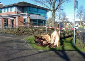 Maar niet voor alle bomen liep het even goed af. De storm maakte ook in de Hoeksche Waard diverse slachtoffers. Zo gingen er o.a. nabij of in Numansdorp, Oud-Beijerland, Strijen en ‘s-Gravendeel bomen plat. Het ging in de meeste gevallen om jonge bomen en bomen die nog maar net van ‘middelbare leeftijd’ waren. Langs een dijk in de buurt van Strijen sneuvelden o.a. enkele iepen van zo’n 30-35 jaar oud en bij de voormalige bibliotheek van ‘s-Gravendeel brak een linde van rond de 70 jaar bij de voet af. ‘Fraxinus Excelsior’ onderzocht een vijftal van de gesneuvelde bomen en vier bleken al aangetast te zijn door schimmels of een ziekte. Met rukwinden tot zo’n 110 km per uur is het niet vreemd dat er ook bomen het loodje leggen. Maar tijdens deze strom bleek weer dat het vaak niet de oude reuzen zijn die de strijd tegen de elementen verliezen.