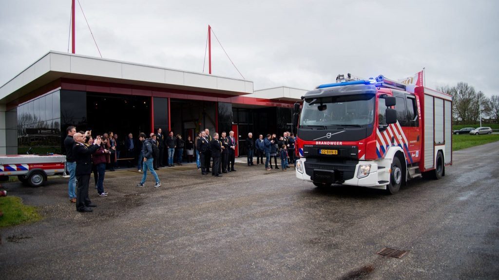Van het ‘oude’ blusvoertuig werd symbolisch afscheid genomen door deze weg te rijden en hiermee plaats te maken voor het nieuwe voertuig.