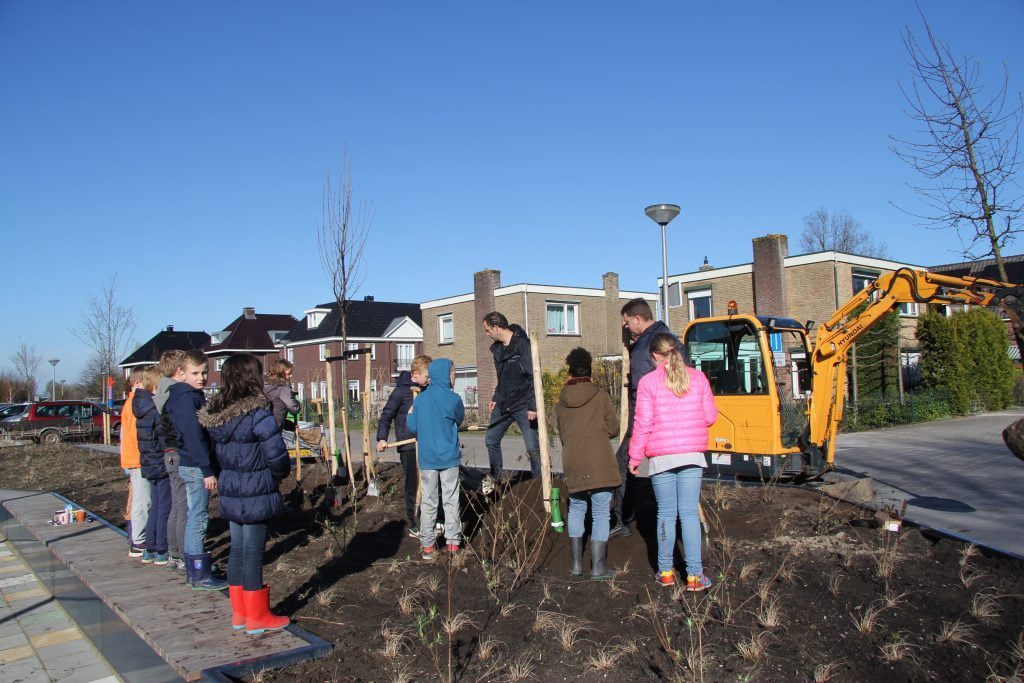 Na de opening van de nieuwe school in september vorig jaar kon het schoolplein nog wel wat opfleuring gebruiken in de vorm van bomen en planten. Daarom zijn er vandaag door de schoolkinderen en wethouder Henk van Etten acht bomen en een beukenhaagje geplant op de pleinen aan de Beatrixlaan en Van Koetsveldlaan.