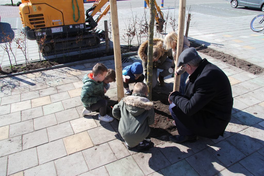 Na de opening van de nieuwe school in september vorig jaar kon het schoolplein nog wel wat opfleuring gebruiken in de vorm van bomen en planten. Daarom zijn er vandaag door de schoolkinderen en wethouder Henk van Etten acht bomen en een beukenhaagje geplant op de pleinen aan de Beatrixlaan en Van Koetsveldlaan.
