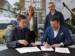 OUD-BEIJERLAND – Stichting Centrummanagement Oud-Beijerland in het algemeen en centrummanager Sem den Hollander kunnen ook de komende vier jaar weer ‘vol aan de bak’. Om alle inspanningen en werkzaamheden te continueren, zetten wethouder Harry van Waveren en stichtingsvoorzitter Henk Preesman hun handtekening onder het . Dit gebeurde tijdens een bijeenkomst in het gemeentehuis op woensdag 29 maart 2017.