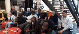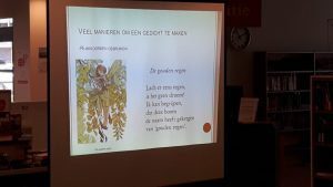Dinsdag 4 april was er het tweede Taaltrefpunt in het Weegje in ’s-Gravendeel. Zo’n 15 bewoners van het azc aan de Kilweg luisterden naar een enthousiaste presentatie over gedichten maken. En gedichten maken kunnen ze wel in Nigeria, Afganistan, Syrië, China, Irak, Mongolië, of waar deze dorpsgenoten ook maar vandaan komen. Het was gezellig druk in de hal en diverse Seuters, op weg naar de tandarts, of bezig een boek te lenen, bleven verrast even staan luisteren.
