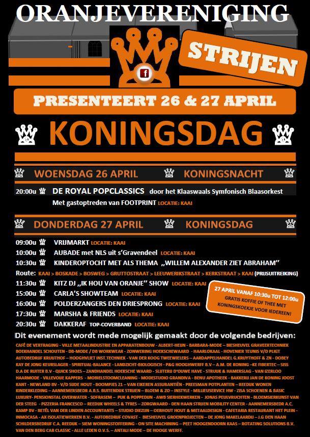 STRIJEN – Op woensdag 26 april is het weer feest in Strijen. Dan viert Strijen de Koningsdagen.