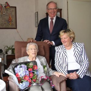 Loco-burgemeester Henk van Etten en zijn echtgenote bezochten de 100-jarige en brachten onder overhandiging van een boeket bloemen de felicitaties over namens het gemeentebestuur.