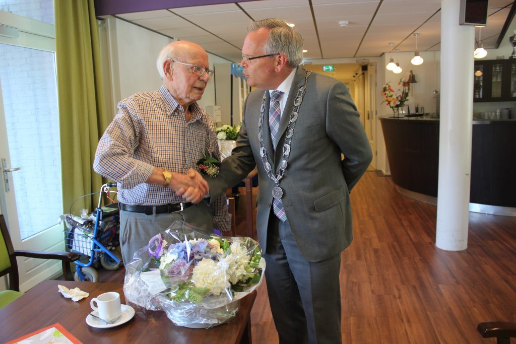 Burgemeester Jan Luteijn feliciteerde hem vanmiddag in het bijzijn van familie en vrienden met deze bijzondere leeftijd. Namens het hele college overhandigde de burgemeester de heer Hagoort een mooi bloemstuk.