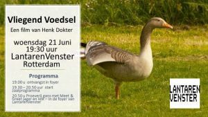 Rotterdam – Op 21 juni vindt in LantarenVenster Rotterdam een voorvertoning plaats van de documentaire Vliegend Voedsel, waarin documentairemaker Henk Dokter een jaar lang de wilde gans in de Nederlandse natuur vastlegde. In deze documentaire, die later dit jaar op televisie bij NPO2 wordt uitzonden, wordt het leven van de gans belicht, van broedgedrag tot consumptie door de mens. De voorvertoning wordt georganiseerd door Hollands Wild.