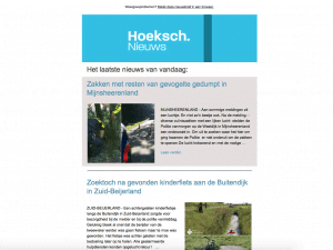 HOEKSCHE WAARD – Hoeksch Nieuws. volgt 24/7 het nieuws in de Hoeksche Waard. Dat publiceren wij op onze website en via facebook en twitter. Vanaf nu kunt u zich ook gratis abonneren op onze nieuwsbrief die zeven dagen in de week verschijnt.