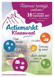 KLAASWAAL – Op zaterdag 16 september 2017 zal er een Actiemarkt worden georganiseerd op het kerkplein van de gereformeerde gemeente te Klaaswaal.