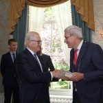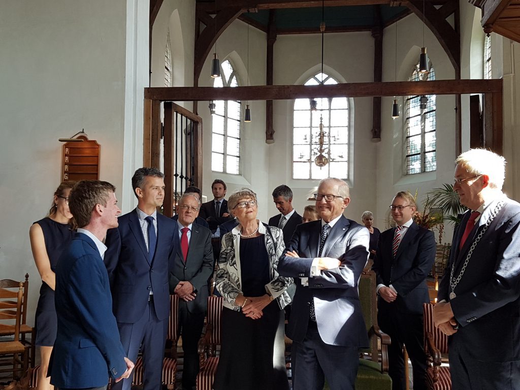 MIJNSHEERENLAND – Op zaterdag 9 september bracht prof.mr. Pieter van Vollenhoven een uitgebreid bezoek aan Mijnsheerenland. Tijdens deze Open Monumentendag werd hij rondgeleid door de Laurentiuskerk en het Hof van Moerkerken.