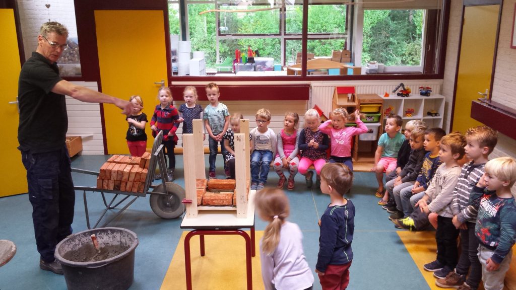 De bouw zelf is verkend met onderdelen als de aanleg van het fundament en het metselen in verband. Voor dat laatste kwam Coen de metselaar op bezoek. Zo konden de kinderen al het geleerde meteen in praktijk brengen en hebben ze samen met Coen een schoorsteen gemetseld.