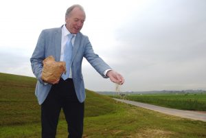 HOEKSCHE WAARD – Heemraad Leo van Gelder, verantwoordelijk voor dijken bij waterschap Hollandse Delta, zaaide vandaag een eerste stuk van een bloemrijke dijk in. Het waterschap heeft twee locaties als proeftuin aangewezen om ervaring op te doen met beheer en onderhoud van bloemrijke dijken: de Buitendijk in Strijensas en de Gorsdijk in ’s-Gravendeel.