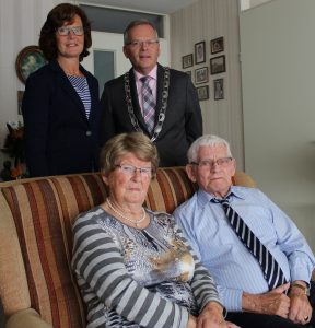 Om dat te vieren bracht Burgemeester Luteijn, samen met zijn vrouw, op maandagmiddag een bezoek aan echtpaar Notenboom om hen van harte te feliciteren met deze mijlpaal.