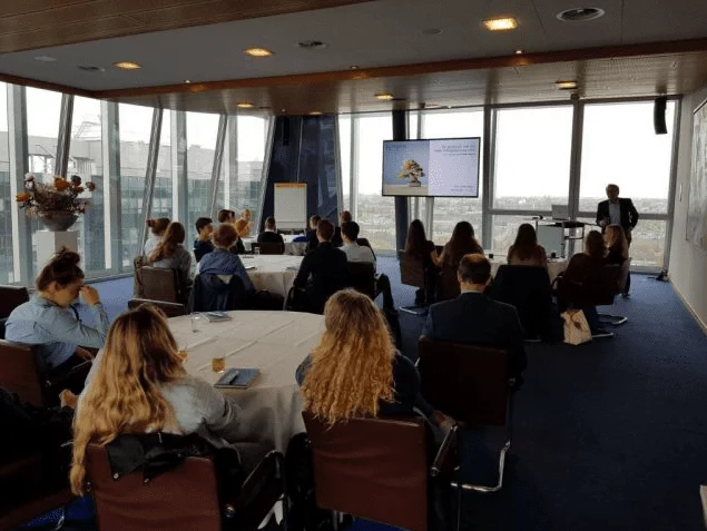 De groep mag daarom strijken met de eer van best beleggende klas van Nederland. Als prijs kreeg de klas een masterclass beleggen van de profs van Kempen & Co. Vandaag was het dan zover: hoe gaan professionele beleggers te werk, hoe ziet hun werkdag aan de Amsterdamse Zuid-as eruit, waar letten zij op bij het selecteren van een aandeel, fonds of obligatie, wat moet je juist niet doen bij beleggen? Allemaal vragen waar de experts van Kempen & Co antwoord op hebben. Naast de masterclass kregen de leerlingen ook een rondleiding, waarbij o.a. de dealingroom werd bezocht.