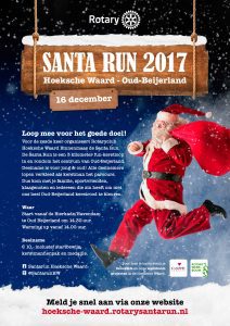 OUD-BEIJERLAND – Voor de zesde keer organiseert Rotaryclub Hoeksche Waard de Santa Run op zaterdag 16 december.De Santa Run is een 3 kilometer fun-kerstloop in en rondom het centrum van Oud-Beijerland.