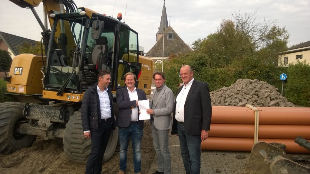 GOUDSWAARD – Met het overhandigen van de officiële opdrachtbrief door wethouder Paul Boogaard aan de aannemer, startte maandag 16 oktober de rioolvernieuwing in Goudswaard. Arco de Regt, van het in Goudswaard gevestigde aannemingsbedrijf J. de Regt & Zn, nam de brief in ontvangst.