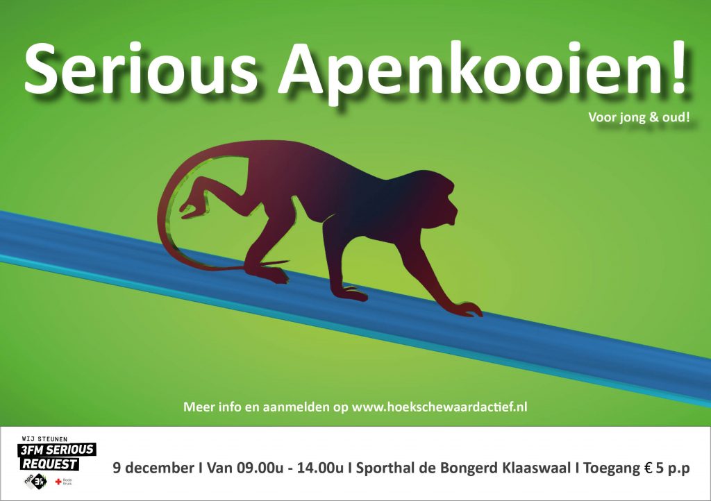 KLAASWAAL – Kom jij ook gezellig apenkooien?! Op zaterdag 9 december in de Bongerd in Klaaswaal. Entree; 5,- p.p. De opbrengst gaat naar Serious Request!.