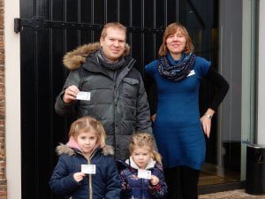 HEINENOORD – Op de eerste openingsdag van Museum Hoeksche Waard in het nieuwe jaar verwelkomde Directeur Belle van den Berg op 3 januari de allereerste bezoekers met een Museumkaart; Daan, Jasmijn en Julia uit Mijnsheerenland.