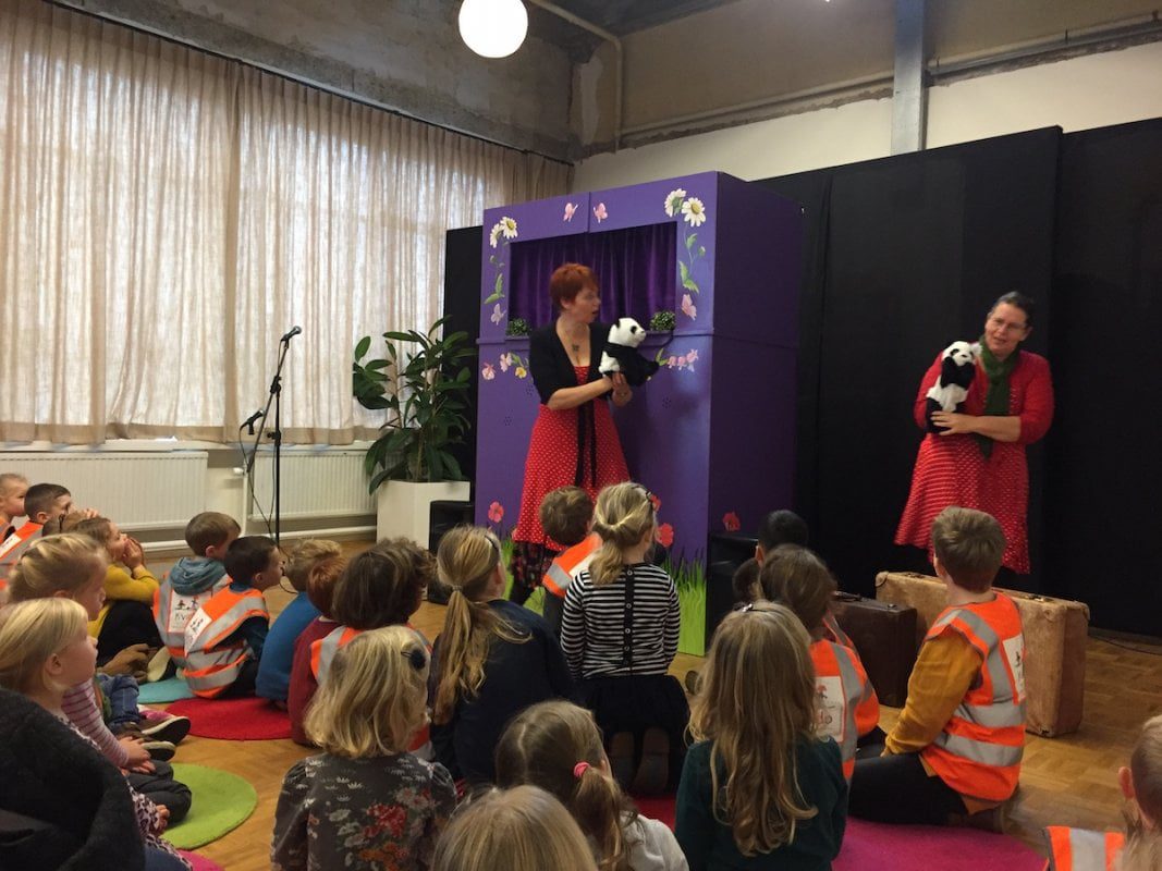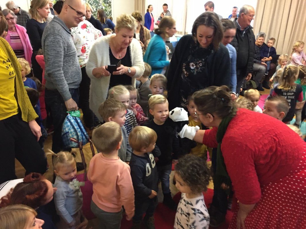 Ruim 200 kleine en grote gasten genoten zichtbaar van Panda en zijn vriendjes tijdens de vrolijke en muzikale voorstelling ‘Panda gaat op reis’. Na afloop mochten de kinderen Panda een handje geven en hem een fijne vakantie wensen.