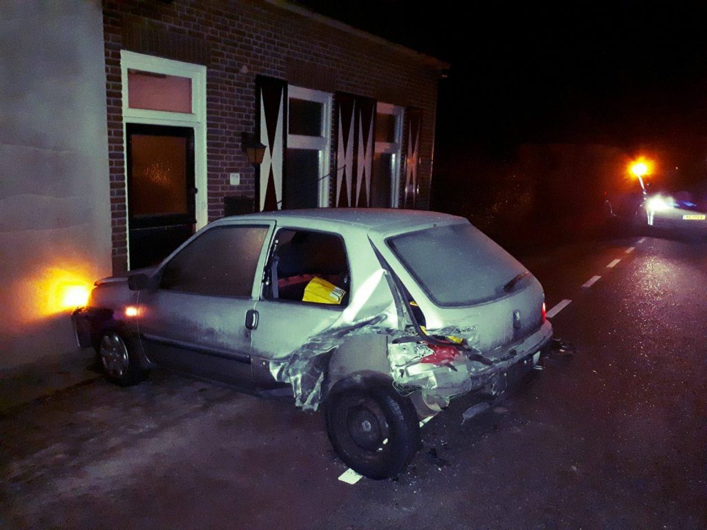 ZUID-BEIJERLAND Omstreeks 3.35 uur vannacht werd op t Zwartsluisje in Zuid-Beijerland deze geparkeerd staande auto aangereden. Hierdoor werd de onderkant van de voordeur eruit gereden.