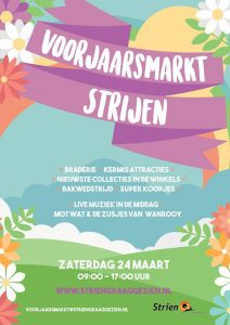 STRIJEN – Ook dit jaar wordt er wederom een Voorjaarsmarkt in Strijen georganiseerd. Deze markt wordt gehouden op zaterdag 24 maart van 09.00 tot 17.00 uur. De markt zal plaats vinden in de Kerkstraat, Boompjesstraat en rondom de Kaai met o.a. muzikale optredens van de Zusjes van Wanrooy en de band Mot Wat