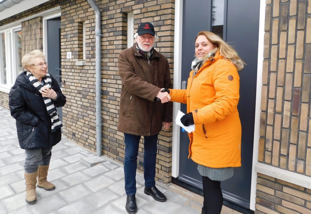 Deze acht nieuwe seniorenwoningen zijn voorlopig de laatste nieuwe huurwoningen die in het ‘Dorpshart’ in Mijnsheerenland zijn opgeleverd. De ruim opgezette, levensloop bestendige woningen hebben tal van voorzieningen bijna letterlijk binnen handbereik: Het nieuwe, einde 2017 feestelijk in gebruik genomen Multifunctionele Centrum is pal tegenover de nieuwbouw en naast dit MFC is de in juli 2016 geopende supermarkt aan het Van der Straatenplein. Naast de sleutels ontvingen alle toekomstige bewoners van HW Wonen ook nog een fraai bloemstukje. De heer een mevrouw Lubeek zijn heel blij met hun nieuwe woning: ‘Wij komen hier niet vandaan hoor. Op dit moment wonen wij nog in Oud-Beijerland, maar we moesten gelijkvloers gaan wonen en toen kwamen deze huizen in beeld. We zijn er heel blij mee. De keuken is ook erg mooi, die ga ik nu meteen maar eens inspecteren’, aldus een opgetogen mevrouw Lubeek. Een goede vijf maanden geleden, in oktober 2017, werden overigens al de senioren-appartementen in het MFC (Multifunctionele Centrum) opgeleverd.