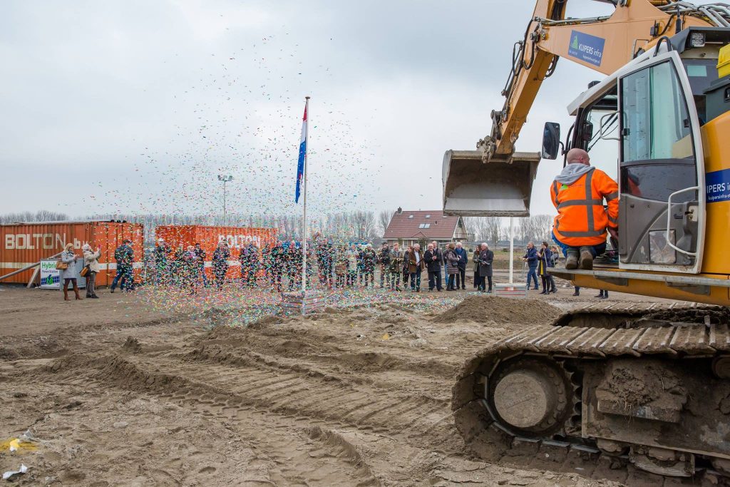 Numansdorp – Woensdag 7 maart heeft burgemeester Luteijn, onder toeziend oog van de toekomstige bewoners, de eerste paal geslagen van het nieuwe appartementencomplex ‘De Havenmeester’ in de Torensteepolder.