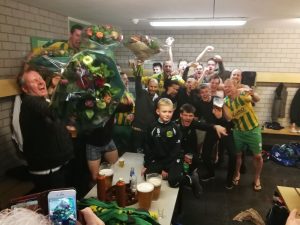 Na het laatste fluitsignaal was het dan toch zover, Binnenmaas is periode kampioen. Dit werd uiteraard gevierd met een klein feestje in de kantine.