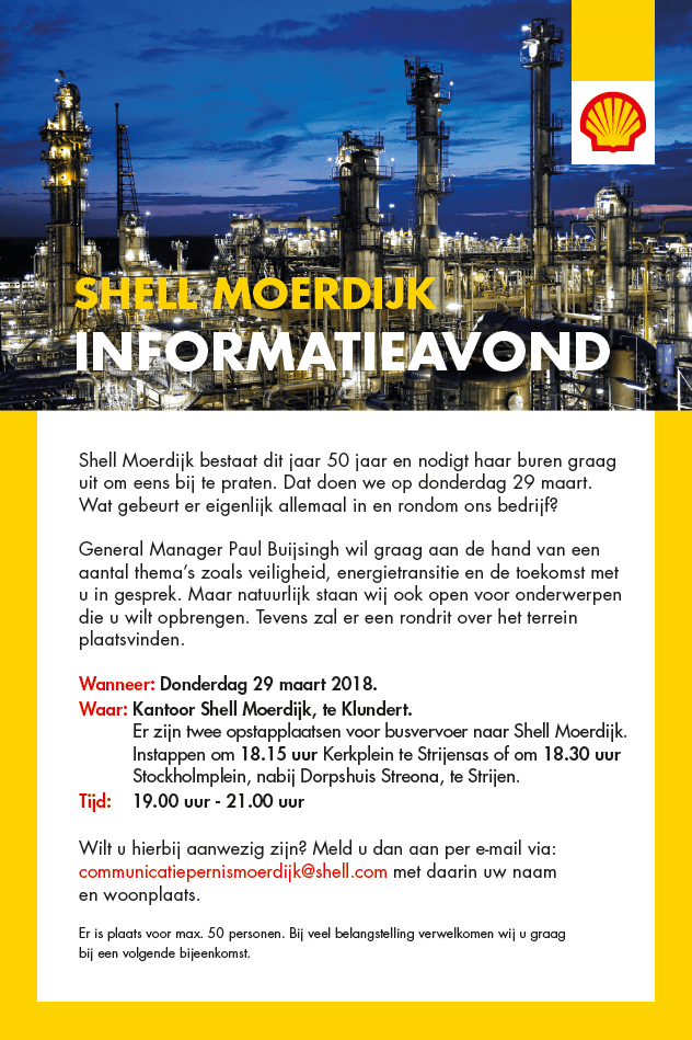 MOERDIJK – Shell Moerdijk bestaat dit jaar 50 jaar en nodigt haar buren graag uit om eens bij te praten.