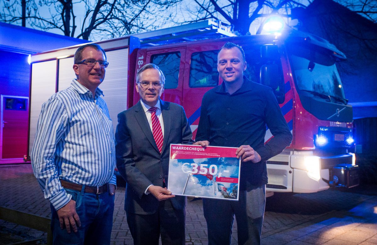 Numansdorp – vrijdag 6 april 2018. Tijdens de korpsavond van de Numansdorpse Brandweerverenging overhandigde burgemeester Jan Luteijn van Cromstrijen een cadeaucheque aan de voorzitter, de heer Pieter Pierneef.