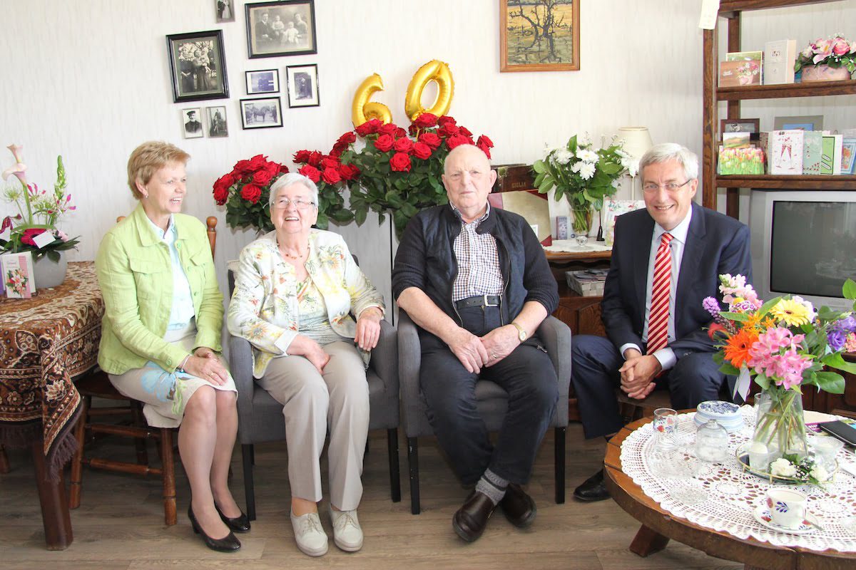 Burgemeester Borgdorff en zijn echtgenote bezochten het echtpaar en brachten onder overhandiging van een boeket bloemen de felicitaties over namens het gemeentebestuur.