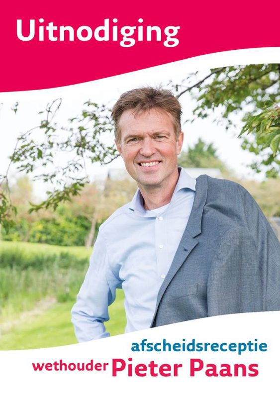 NUMANSDORP – Na ruim vier jaar neemt Pieter Paans afscheid als wethouder van de gemeente Cromstrijen. Daarom nodigt de gemeente Cromstrijen iedereen graag uit voor zijn afscheidsreceptie op vrijdag 8 juni 2018 vanaf 19.30 uur, in het gemeentehuis.