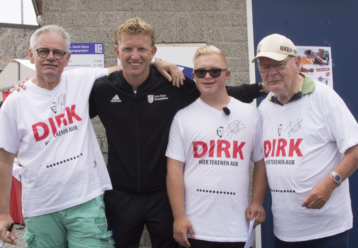 Dirk Kuijt wilde daar graag aan meewerken. Speciaal op zijn sportdag bij Quick Boys in Katwijk heeft hij tijd gemaakt om een praatje te maken met hen, natuurlijk even op de foto te gaan en zijn handtekening te zetten op de speciaal voor deze gelegenheid gemaakte shirts.