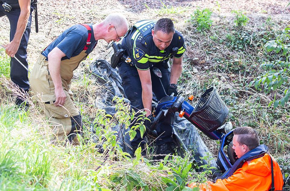 Een 89 jarige scootmobiel bestuurder kon vanmiddag omstreeks 15.00 uur door de snelle wijkagent Jordi en een omstander uit de sloot worden gehaald bij Kuipersveer gelegen tussen Puttershoek en Heinenoord.