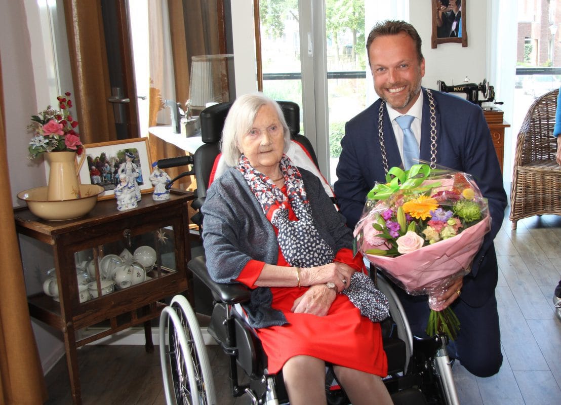 PUTTERSHOEK – Op vrijdag 13 juli is mevrouw V.C van Dam uit Puttershoek maar liefst 100 jaar geworden. Loco-burgemeester Leon van Noort bracht mevrouw Van Dam een verjaardagsbezoek en bracht onder overhandiging van een boeket bloemen en een doos gebak de felicitaties over namens het gemeentebestuur van Binnenmaas.