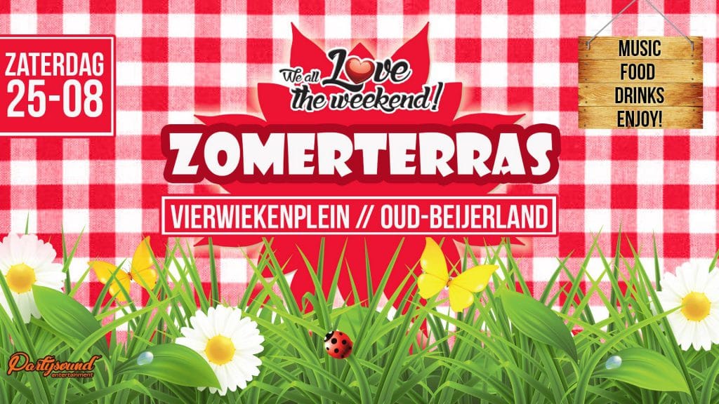 Heerlijk genieten in de zon van de beste zangers, bands en lokale acts op het “We All Love The Weekend” zomerterras! Natuurlijk zullen er ook diverse foodtrucks met heerlijke hapjes aanwezig zijn!
