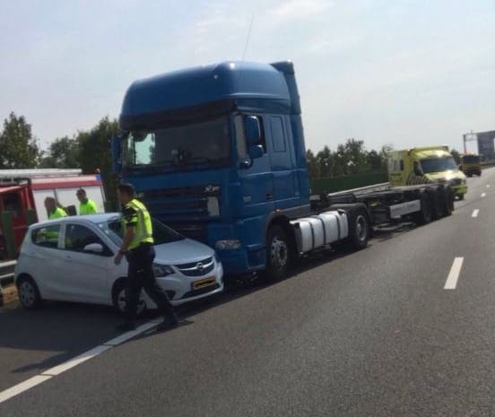 De achterkant van de vrachtwagen stond op de rechterrijstrook. Voor hulpverlening en veilige werkomgeving werden er 2 rijstroken dicht gezet. Eentje vanwege de vrachtwagen en eentje voor hulp.