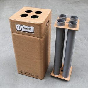 Het geheel resulteerde in een herbruikbare en een recyclebare versie van de beker-verzamelaar. De herbruikbare versie bestaat uit vier gerecyclede kunststof pijpen die onderling zijn gekoppeld. De voordelen van de herbruikbare versie zijn dat men geen kokers op voorraad hoeft te houden en dat hij met één handeling is te (her)plaatsen. Bovendien is hij op de langere duur minder belastend voor het milieu. De recyclebare versie bestaat uit vier kartonnen kokers welke los in de zak worden geplaatst. Deze kunnen gelijk met de bekers worden afgevoerd naar de recycling.